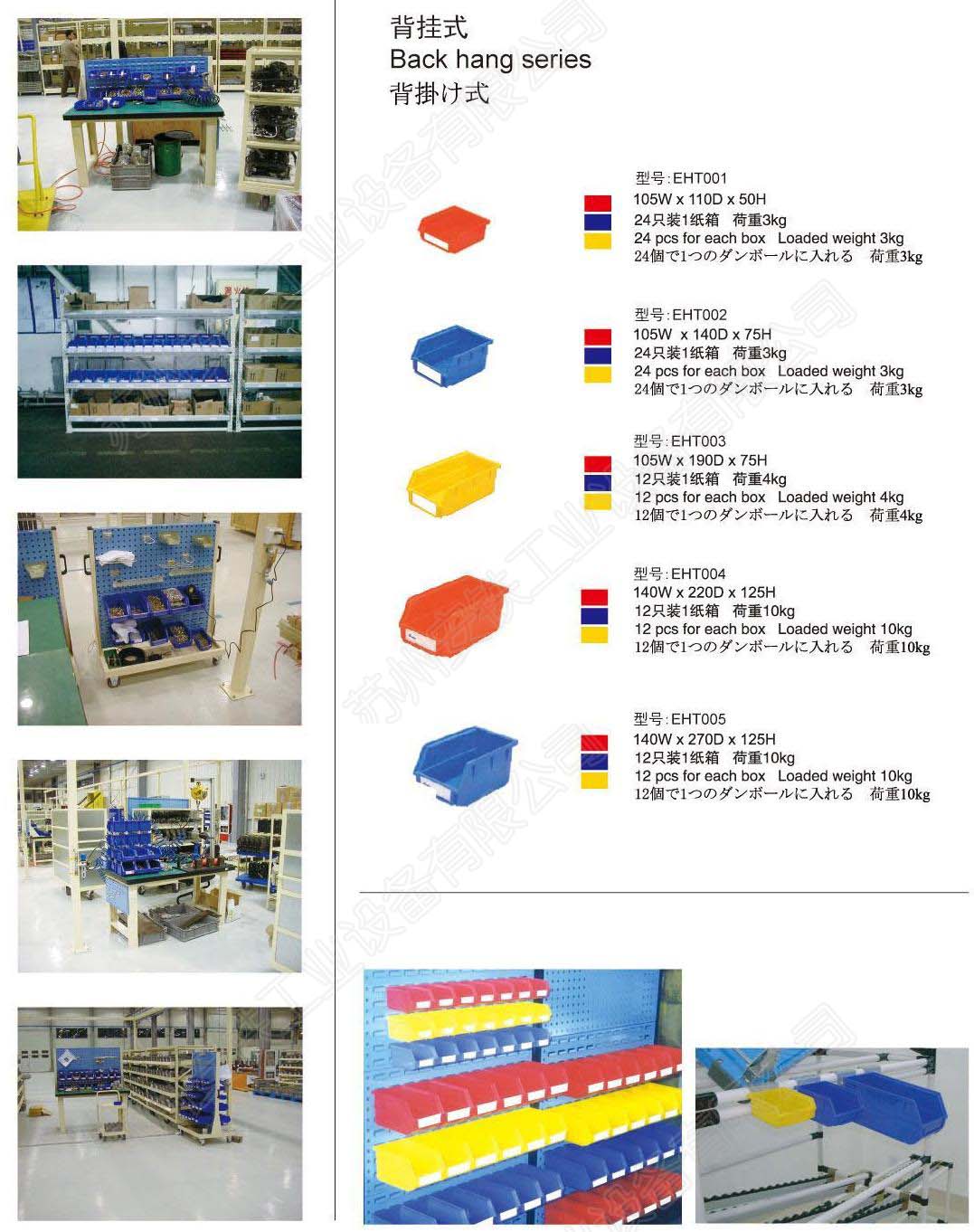 • 产品描述:零件盒也称元件盒,适合工厂、办公室各种小型零件、物料、文具用品等之储存使用。广泛用于机械、汽车、家电、轻工、电子等行业,能耐酸耐碱、耐油污,无毒无味,可用于盛放食品,清洁方便,零件周转便捷、堆放整齐,便于管理。其合理的设计,优良的品质,适用于工厂生产中的运输、配送、储存、流通加工等环节。元件盒可与多种物流容器和工位器配合,用于各类仓库、生产现场等多种场合,在生产现场管理越来越被广大企业重视的今天,元件盒帮助完成元件存放的通用化、一体化管理,是生产及流通企业进行现代化物流管理的必备品。